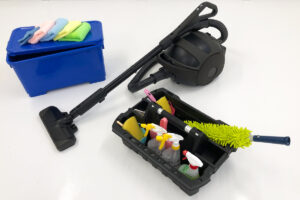 加えて、身の回りの安全確保にも目を向けることが大切です。床が濡れている状態だと滑りやすくなるため、作業の合間に雑巾で水気を拭き取るなど転倒のリスクを減らす工夫をしましょう。掃除道具をまとめて一か所に置き、使い終わった後にしっかり乾燥させておくことで、衛生的な状態を保つことができます。